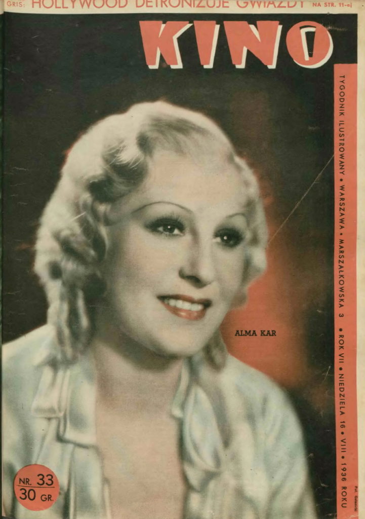 Гортаючи сторінки старих кіно-журналів міжвоєнної доби, неможливо не помітити погляду, що дивиться з обкладинок - це Альма Кар, зірка,