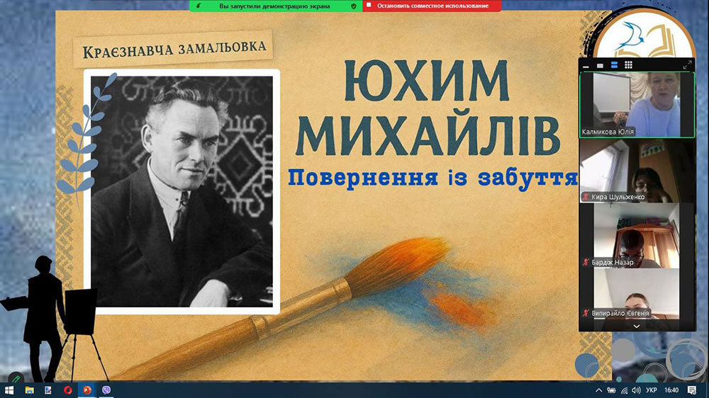 У відділі естетичного виховання Херсонської обласної бібліотеки для дітей імені Дніпрової Чайки відбулися краєзнавчі заходи «Юхим Михайлів: Повернення із забуття», приурочені до 140-річчя з дня народження видатного українського художника, мистецтвознавця, педагога й поета Юхима Спиридоновича ...