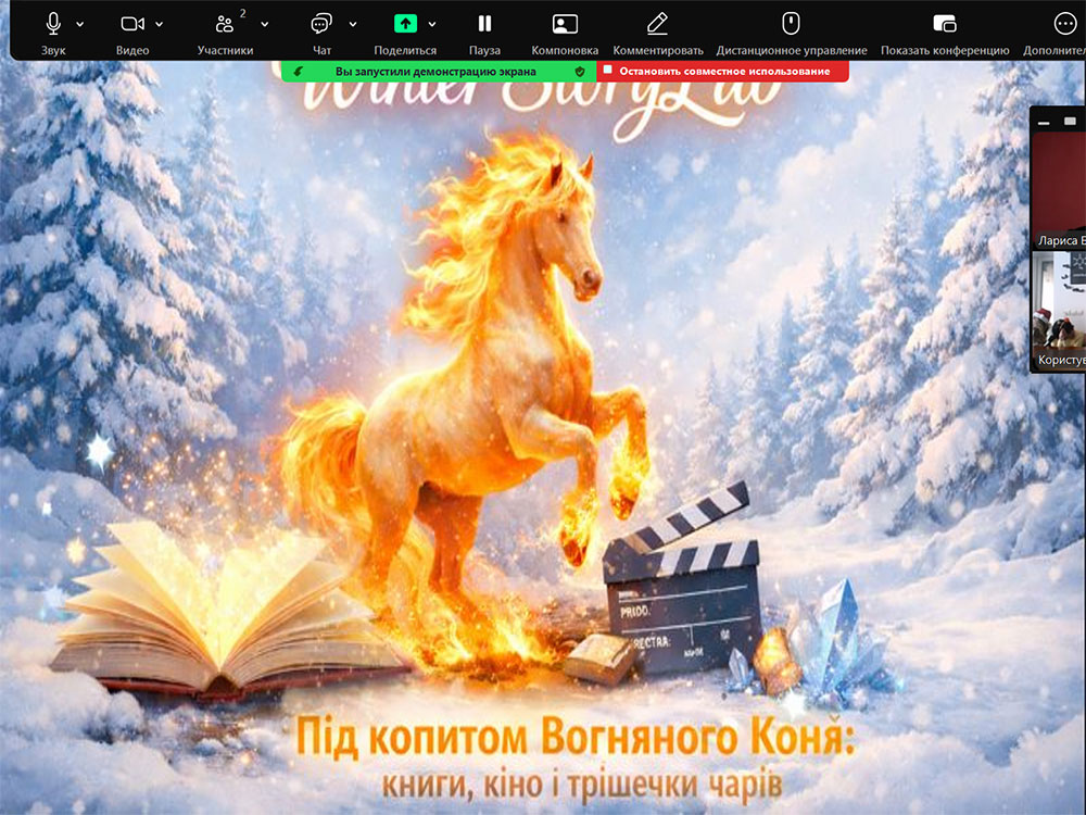 Працівники відділу обслуговування юнацтва та молоді спільно з відділом естетичного виховання Херсонської обласної бібліотеки для дітей імені Дніпрової Чайки провели для завсідників дозвіллєво-молодіжного клубу «MoNoLit» атмосферний захід у форматі Winter StoryLab під назвою «Під копитом ...