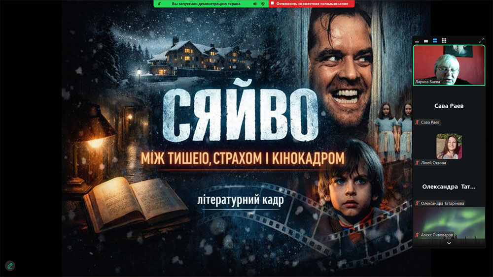 У межах циклу заходів «Читання зі смаком кіно» працівники відділу обслуговування юнацтва та юності Херсонської обласної бібліотеки для дітей імені Дніпрової Чайки провели літературний кадр «Сяйво»: між тишею, страхом і кінокадром», для молодіжного сектору клубу «Cinemahall» ...