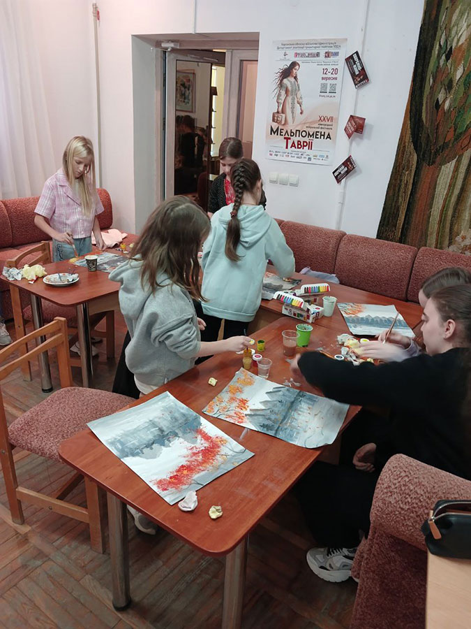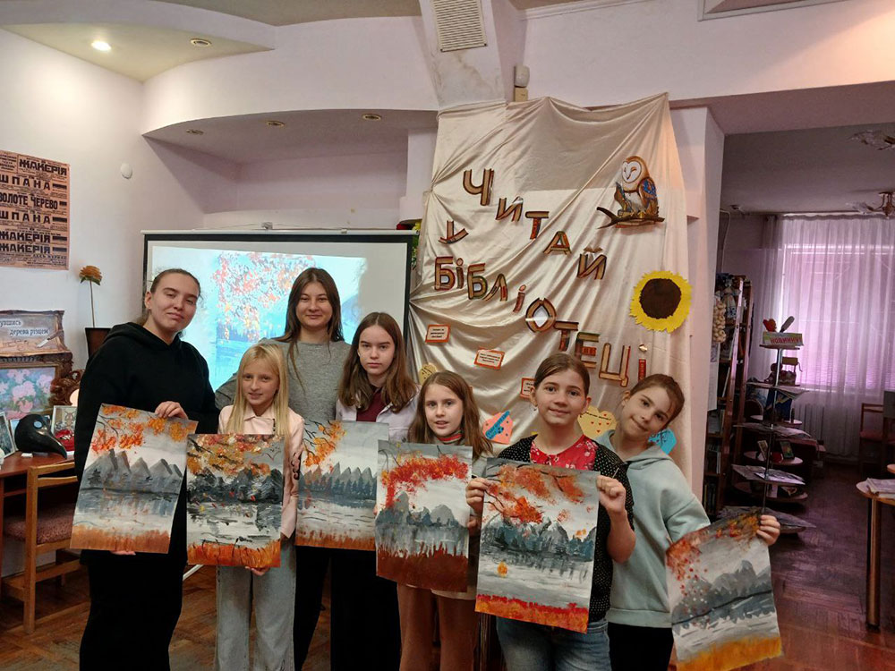 До цього мистецького свята юні талановиті учасники художньої студії «Art Kid’s» , що працює у відділі естетичного виховання Херсонської обласної бібліотеки для дітей імені Дніпровоі Чайки, підготували справжній осінній цикл творчих робіт. Протягом кількох занять діти досліджували тему осені - пори натхнення, тепла і спокою, що спонукає до творчості та відкриттів.