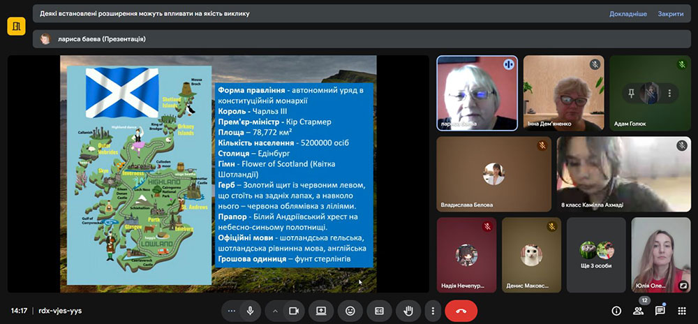 Під час заходу учні також познайомилися з іменами видатних шотландських письменників — Роберта Бернса, Вальтера Скотта, Роберта Льюїса Стівенсона, твори яких прославили рідну землю, її красу, волелюбність і непохитний дух. Їхня поезія та проза стали частиною світової культурної спадщини і надихають нові покоління читачів.
