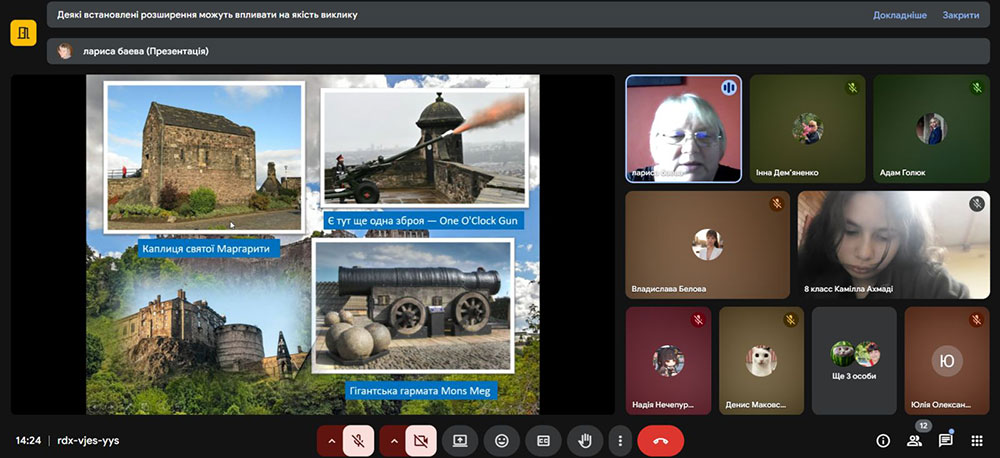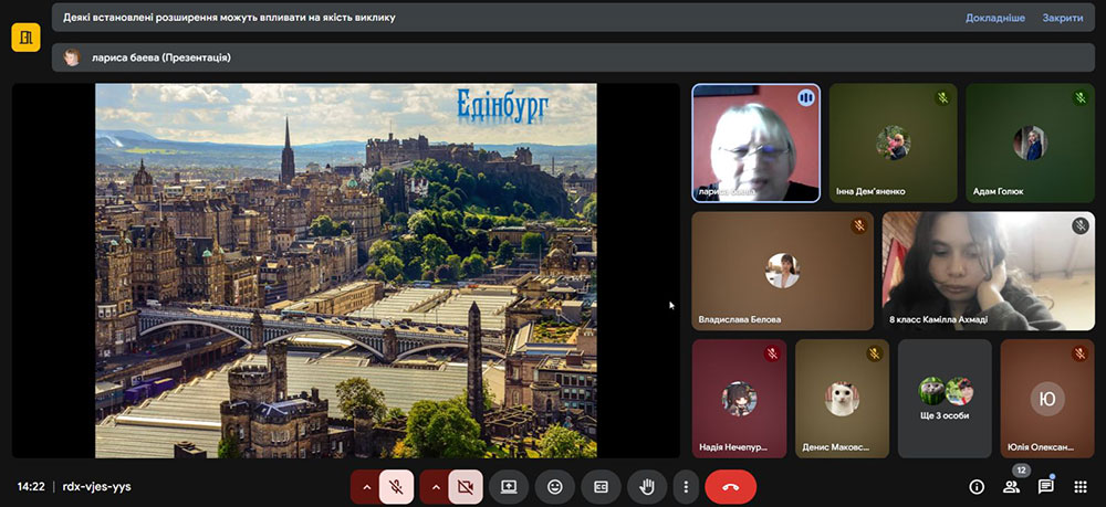 Під час подорожі учні здійснили віртуальний тур найвідомішими містами Шотландії — Едінбургом, Глазго, Абердіном та Стерлінгом. Вони дізналися, чому Едінбург називають "Афінами Півночі", як Глазго перетворився на сучасний центр мистецтва й музики, чим особливий гранітний Абердін і які героїчні сторінки зберігає старовинний Стерлінг.