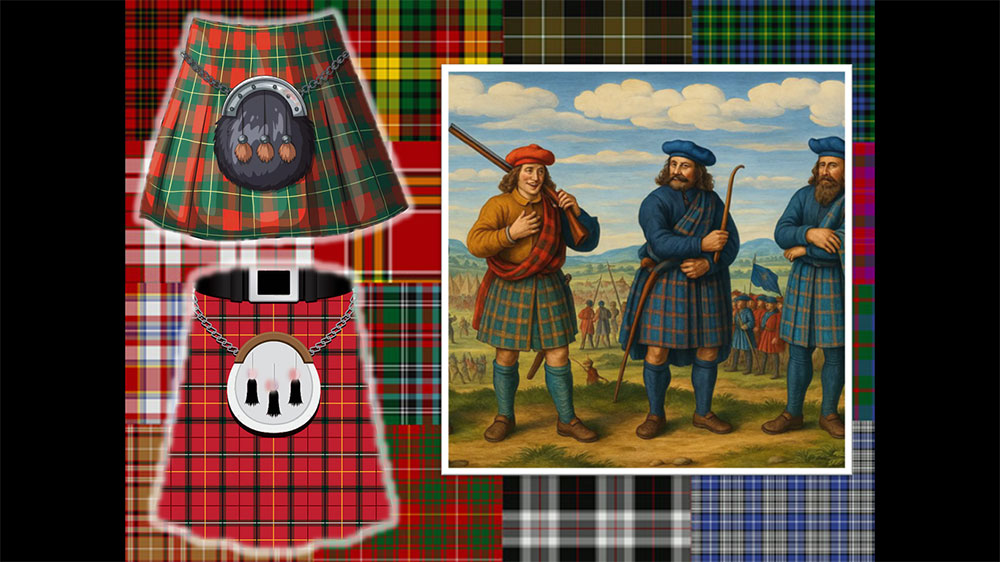 Не оминули увагою й національні символи Шотландії: гордий чортополох, що став емблемою держави, звучання волинки, яке підкорює серце кожного, хто його чує, та, звичайно ж, кілти — різнокольорові картаті спідниці, які здавна є знаком приналежності до певного шотландського клану.