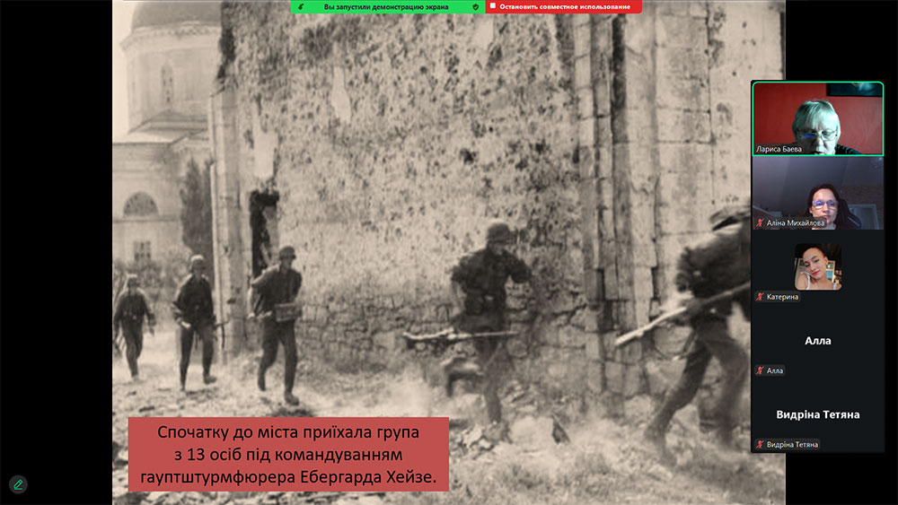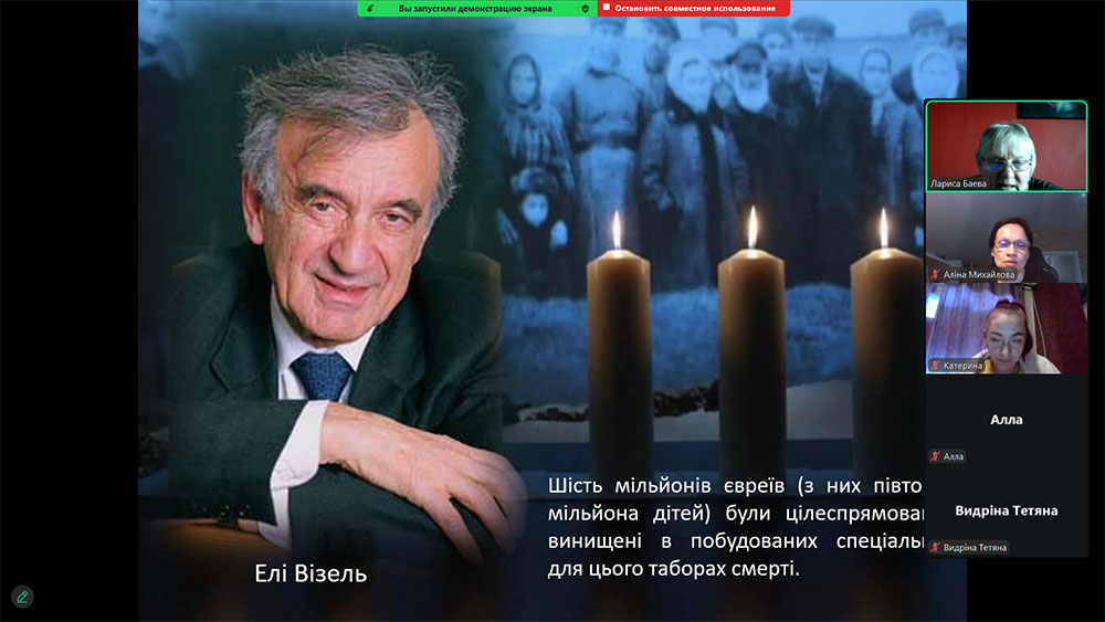 Бібліотекарі розповіли про відомих лікарів і вчителів Херсона, які стали жертвами нацистського терору. Серед них — лікар-терапевт Баумгольц, гінеколог Айзеншток, учитель Трейстер. Не витримавши знущань, наклали на себе руки лікар Богуславський і знаний хірург Коган — перші жертви масових знищень. Учасники заходу також почули про перші розстріли євреїв у Молочній балці, біля валів Херсонської фортеці, а згодом — поблизу Зеленівки. Ці трагічні події назавжди залишили слід у пам’яті міста.