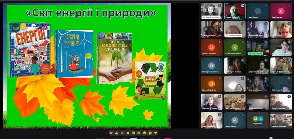 На завершення зустрічі бібліотекарі представили книжковий перегляд «Світ енергії та природи», присвячених темі енергозбереження, відновлюваних джерел енергії та екологічного способу життя.