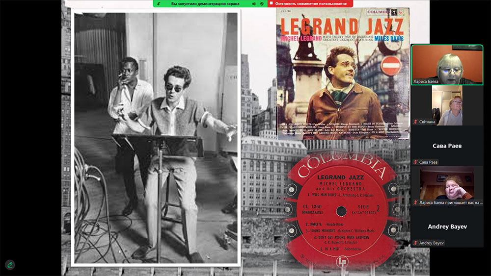 Протягом засідання учасники познайомилися з біографією митця, який став одним із архітекторів відродження французького кіно. Особливо було відзначено його співпрацю з режисерами «нової хвилі» — Жан-Люком Годаром, Франсуа Райхенбахом та, звичайно, Жаком Демі. Саме разом із Демі Легран допоміг сформувати новий жанр — фільм-мюзикл, де музика стає повноцінною мовою оповіді. Клубівці переглянули уривки з відомих стрічок, музика до яких написана Леграном:
