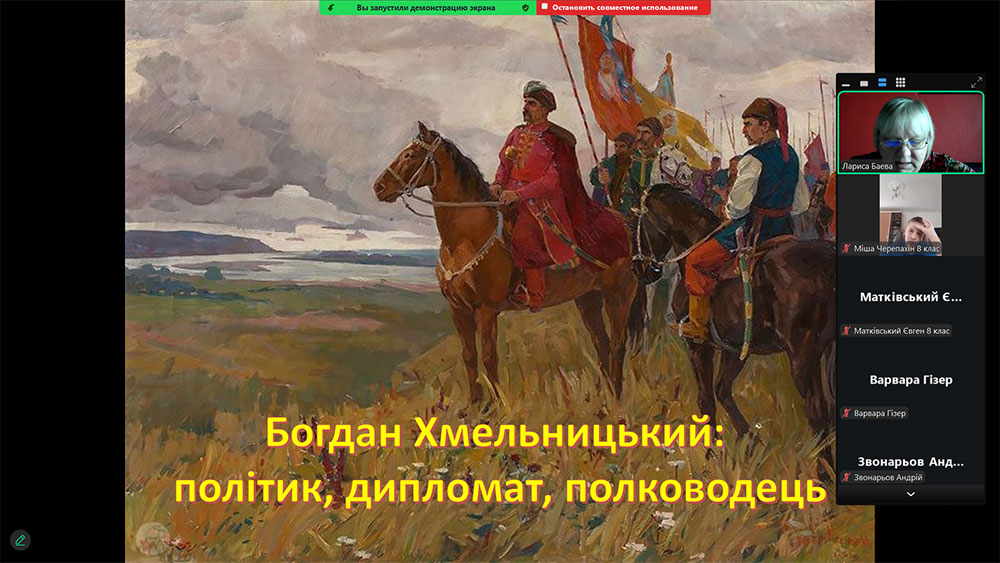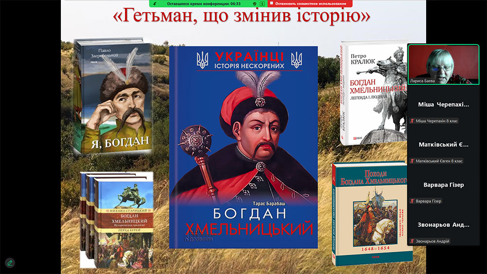 Під час зустрічі гімназисти відкрили для себе багатогранну постать Богдана Хмельницького – державного діяча, талановитого стратега, тонкого дипломата і мудрого керманича, який стояв біля витоків творення української державності у XVII столітті. Присутні дізналися про ключові періоди життя гетьмана: його дитинство, навчання, участь у військових кампаніях, формування політичних поглядів та роль у Національно-визвольній війні українського народу.