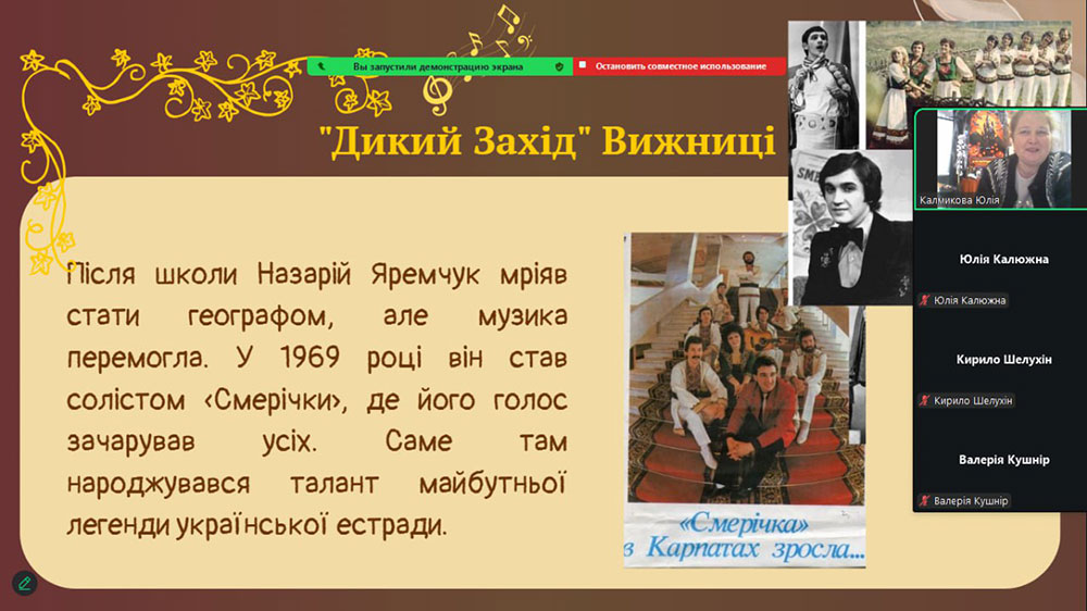 Під час заходу учні поринули у чарівний світ української пісні, краси природи та духовності, який відкрив перед ними Назарій Яремчук. Вони дізналися про дитячі та юнацькі роки співака, його родинні корені, середовище, що сформувало любов до пісні й до рідної землі.