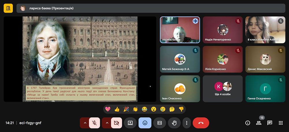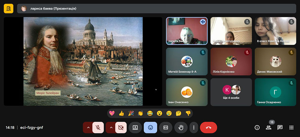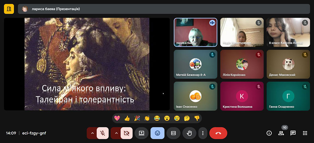 Моріс Талейран — видатний французький дипломат, державний діяч та майстер переговорів, який сформував цілу епоху політичної дипломатії. Попри складні історичні обставини свого часу, він зумів знайти шлях до порозуміння між країнами та політичними силами, для яких конфлікт був звичним станом. Під час заходу учні дізналися про ключові моменти його життя, політичну кар’єру, дипломатичні місії та складність характеру цієї історичної особистості. Особливу увагу було зосереджено на вмінні Талейрана зберігати витримку, тактовність і гнучкість – якості, що й сьогодні лежать в основі поняття «толерантність».