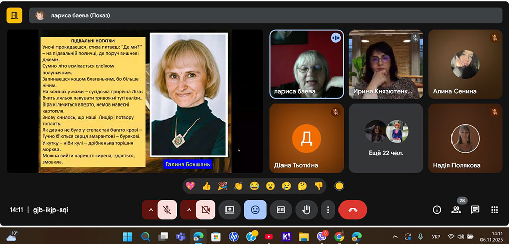 Не менш важливою складовою зустрічі стала розмова про херсонських письменників, що залишалися в окупації та підтримували містян словом — поезією, щирими дописами, голосом надії. Згадали Олену Маляренко, Олександра Меньшова, Артема Петрика, Галину Бокшань, Альону Мовчан та інших — тих, чиє слово теж стало зброєю.