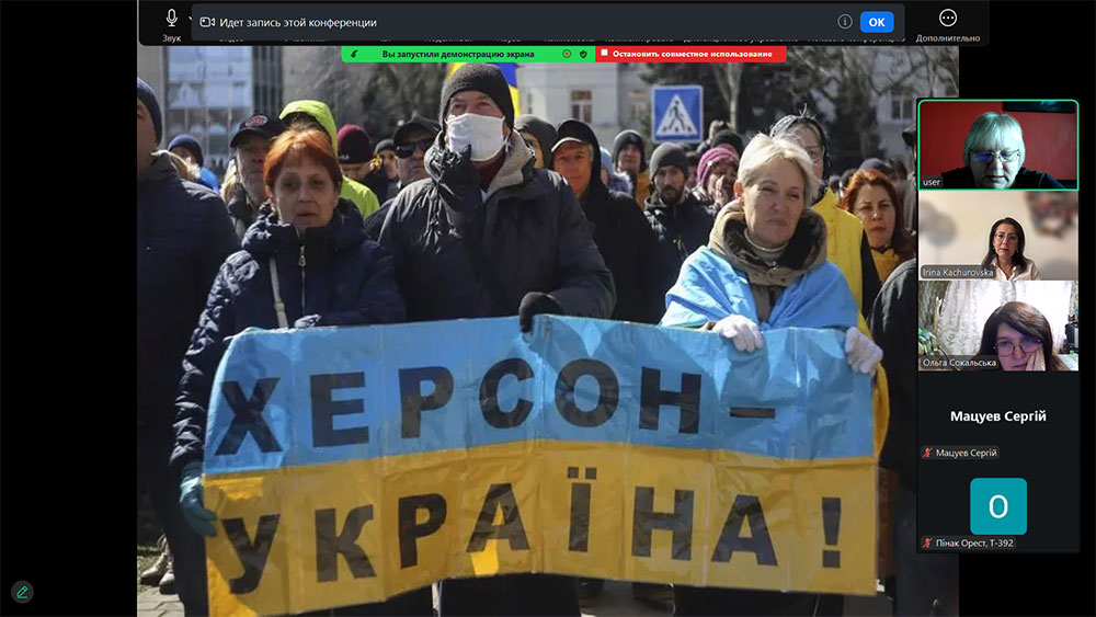 Під час зустрічі учасники згадали найтрагічніші й водночас найгероїчніші сторінки недавньої історії міста: оборону Антонівського мосту, бій тероборони у «Бузковому парку», а також щоденний спротив херсонців в умовах окупації. Говорили про мирні мітинги, акції непокори та про силу єдиного голосу: «Херсон — це Україна!»