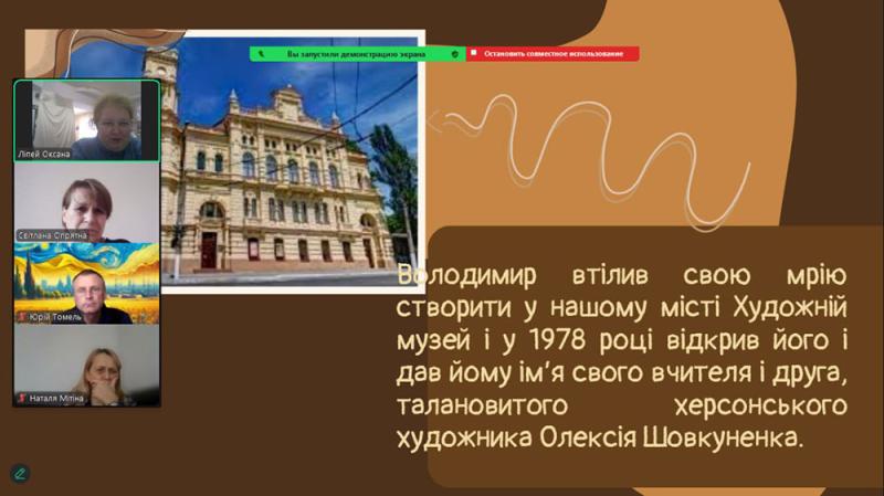 Фахівці бібліотеки розповіли, як із часом цей обдарований хлопчик став відомим майстром пензля, мистецтвознавцем і громадським діячем, який зробив величезний внесок у культурний розвиток нашого краю. Саме завдяки його ініціативі у Херсоні з’явилися Художній музей імені Олексія Шовкуненка, нові бібліотеки, театр ляльок тощо.