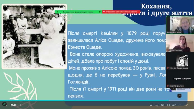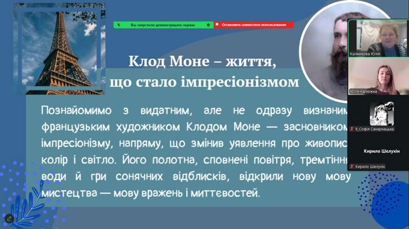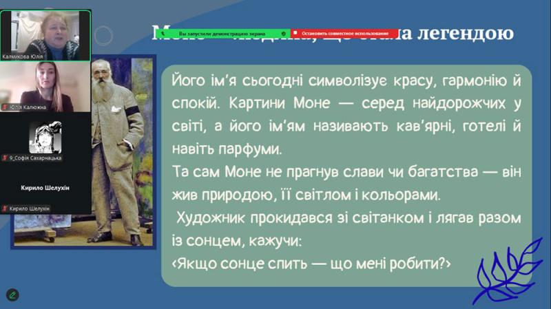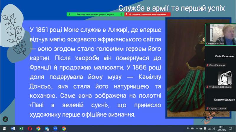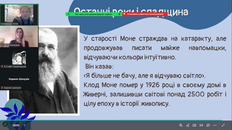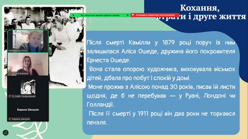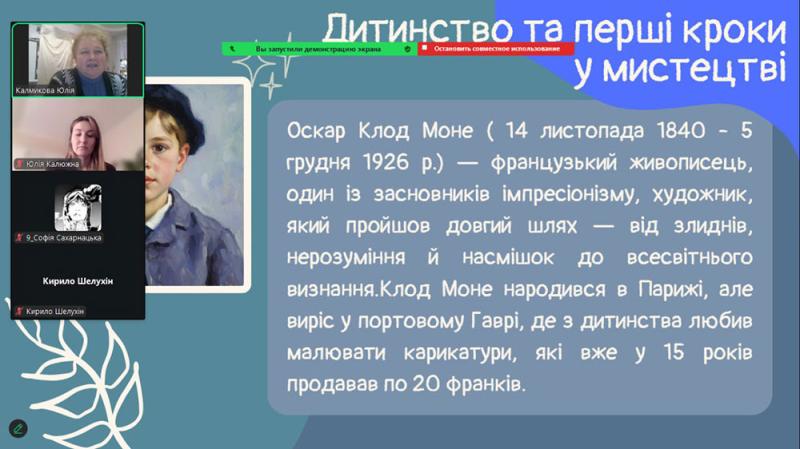 Учні простежили шлях Моне - від ранніх років у Гаврі, де юний художник захопився малюванням і зустрів свого наставника Ежена Будена, до відкриття пленеру, що визначило його подальший творчий розвиток.