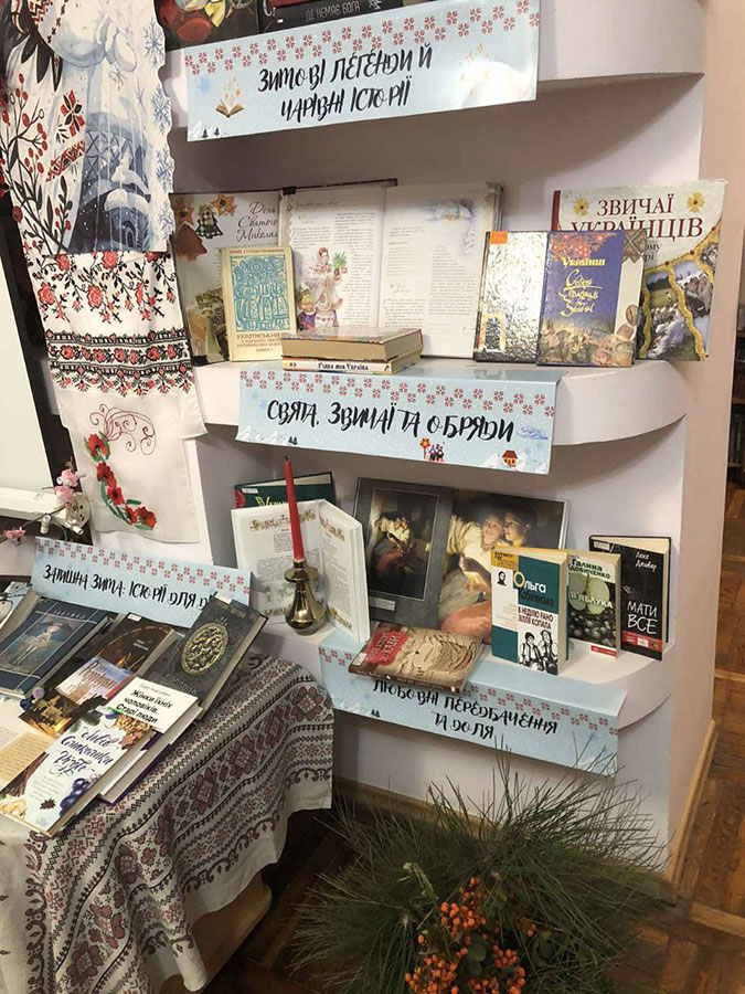 Фахівці відділу естетичного виховання Херсонської обласної бібліотеки для дітей імені Дніпрової Чайки запросили читачів поринути в цей світ тепла та обрядової магії через книжкову виставку-етнопростір «Зимові вайби українських традицій». У ній органічно поєдналися фольклорні джерела, етнографічні дослідження, класика та сучасна література - усе, що допомагає побачити українську зиму у всій її багатогранності.