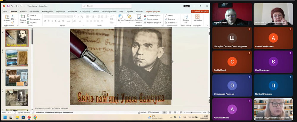 Учасники зустрічі познайомилися з багатогранною постаттю Уласа Самчука — автора, який став одним із літописців історичної долі українського народу ХХ століття. Старшокласники дізналися про його непростий життєвий шлях: від волинського дитинства й навчання у Рівному та Крем’янці — до еміграційних років у Чехословаччині, Німеччині та Канаді, де письменник продовжив активну творчу та громадську діяльність.