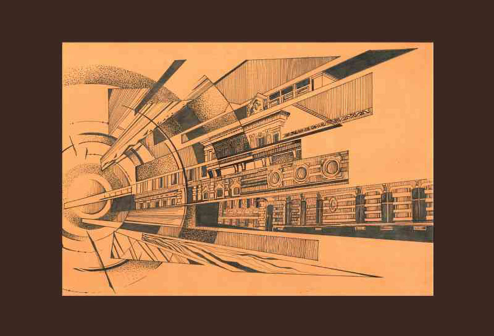 Працюючи тушшю та лайнерами й поєднуючи їх із елементами архітектурної фантазії у стилістиці футуризму та конструктивізму, Валерія деформує звичні силуети споруд, вплітає їх у хвилеподібні лінії, створюючи ефект руху та внутрішньої вібрації - ніби відлуння міста, що продовжує жити попри небезпеку. Вражає гармонійне поєднання динамічної експресії та чіткої архітектурної структури: у композиціях відчутний контраст між крихкістю людських емоцій і стійкістю міських форм. Абстрактні образи, подібні до розмитих спогадів, переплітаються із впізнаваними елементами - мостами, будинками, фасадами історичних споруд. Вони нагадують про те, що навіть у хаосі війни залишаються символи стабільності та надії.