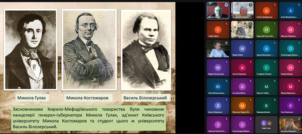 Окрему увагу було приділено центральним постатям братства — Миколі Костомарову, Опанасу Марковичу, а також діячам, які брали участь у засіданнях товариства: Тарасу Шевченку та Пантелеймону Кулішу. Учні дізналися, що головною метою діяльності Кирило-Мефодіївського товариства була боротьба проти кріпацтва та національне визволення українського народу.