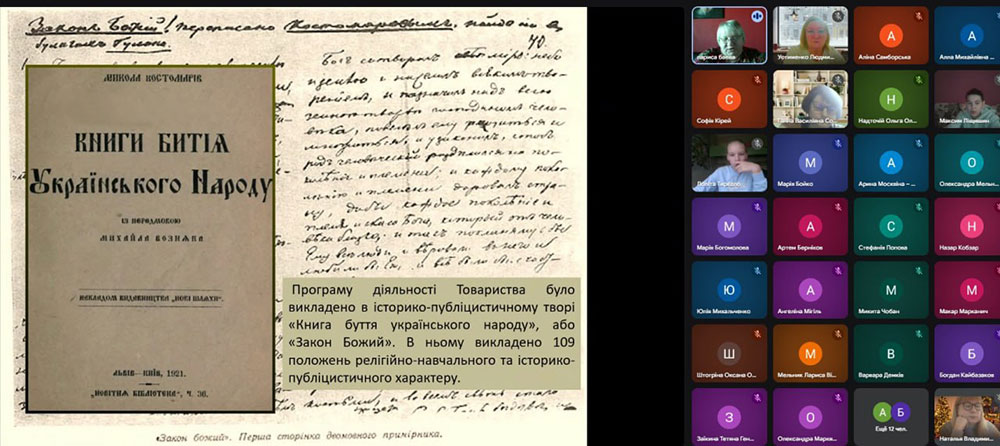 Під час заходу старшокласники ознайомилися з політичними та суспільними обставинами середини ХІХ століття, за яких виникло Кирило-Мефодіївське товариство, дізналися про історію його створення та засновників. Наголошувалося, що до організації приймали представників слов’янських народів незалежно від станового походження, а всі члени братства визнавалися рівноправними та складали присягу.