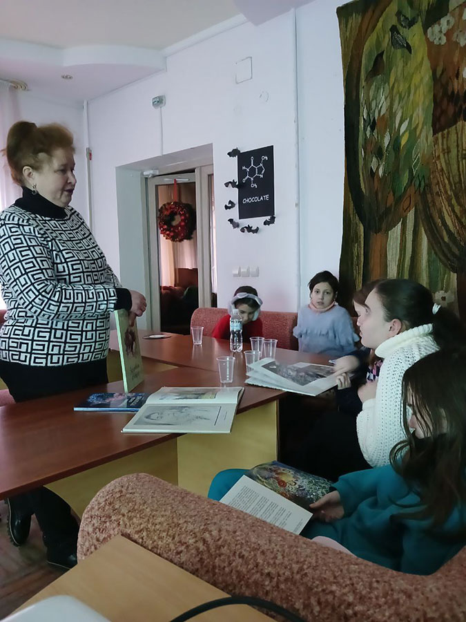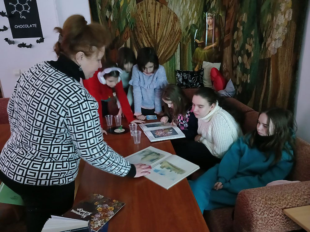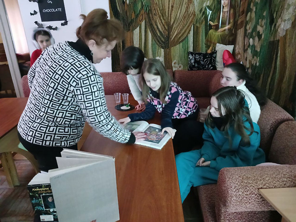 Під час заходу діти дізналися про непросту долю видатної художниці, яка своїми полотнами немов виспівала дивовижну красу України, хоча життя не раз випробовувало її на міцність. Бібліотекар розповіла про те, як, маючи від народження унікальний талант, Катерина Василівна все життя відстоювала своє право малювати, долаючи тяжкі побутові обставини, людський осуд і нерозуміння навіть з боку рідних.