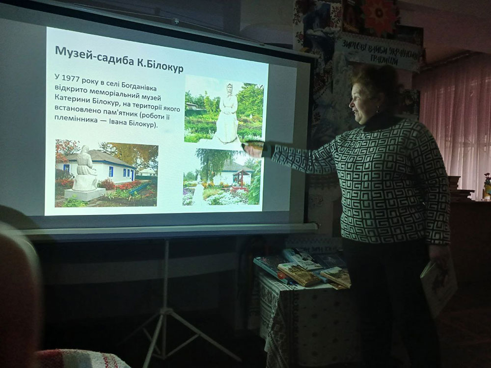 У дні відзначення 125-річчя від дня народження самобутньої української художниці Катерини Білокур фахівці відділу естетичного виховання Херсонської обласної бібліотеки для дітей імені Дніпрової Чайки провели для юних відвідувачів книгозбірні мистецьку розвідку «Заручена з квітами - Катерина Білокур».