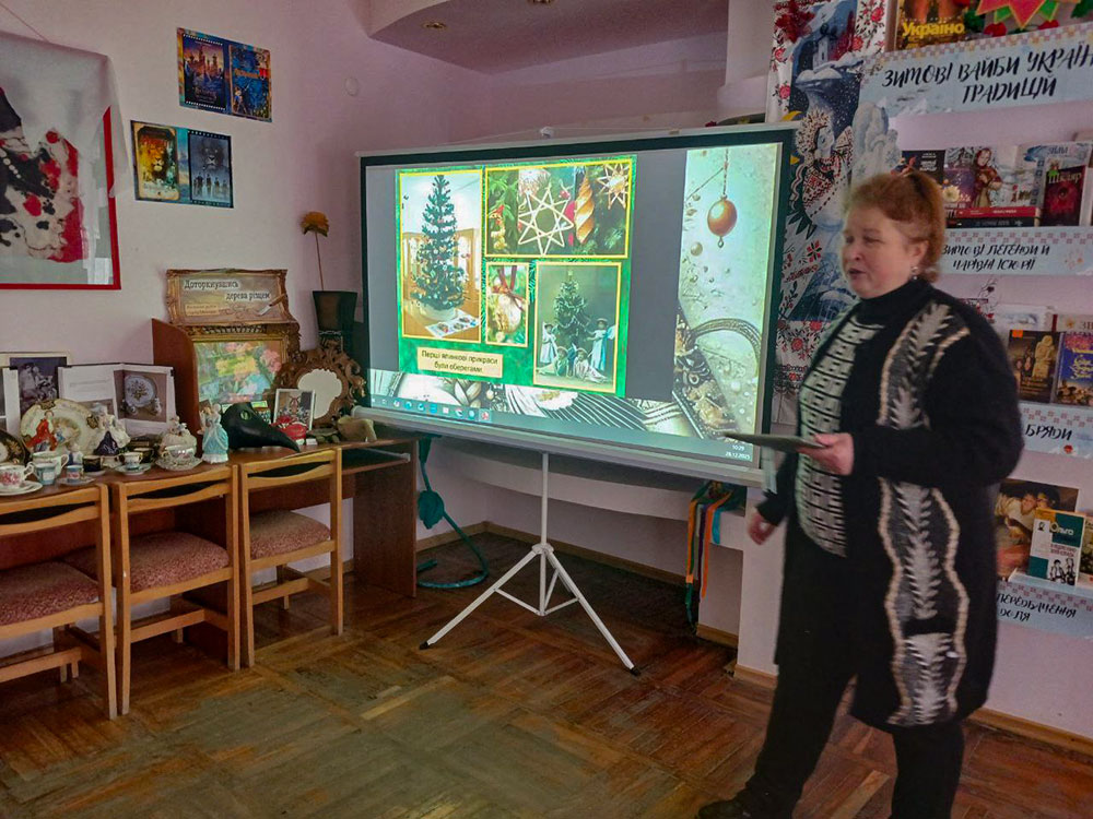 Під час етноколажу «Ялинкова прикраса як символ українського Різдва» бібліотекарі відділу естетичного виховання розповіли дітям про історію появи в Україні ялинки та ялинкових прикрас. Учасники заходу дізналися, що спочатку ялинку ставили й прикрашали саме на Різдво, а традиція прикрашати різдвяне дерево з’явилася в Україні у ХІХ столітті й була пов’язана з європейським культурним контекстом, водночас зберігаючи власну національну самобутність.