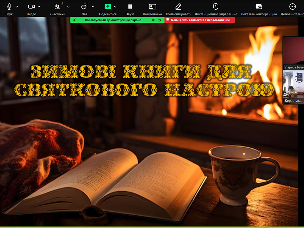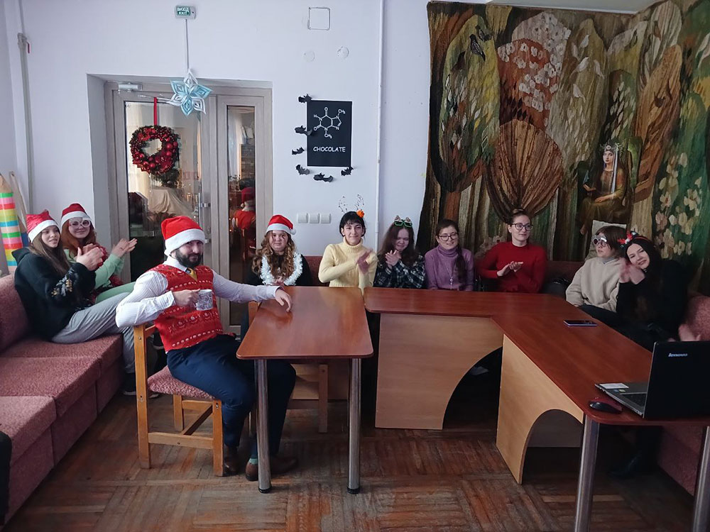 У першій частині зустрічі молодь дізналася про особливості року Червоного (Вогняного) Коня, а також отримала гумористичні бібліотечні прогнози для всіх знаків зодіаку — з порадами, які книги варто прочитати та які фільми переглянути у новому році. Продовженням стала презентація зимових книг для святкового настрою, серед яких були представлені «Маленькі жінки» Луїзи Мей Олкотт, «Листи Різдвяного Діда» Дж. Р. Р. Толкіна, «Джейн Ейр» Шарлотти Бронте, «Любов у часи холери» Ґабріеля Ґарсії Маркеса та інші відомі твори. Атмосферу доповнили яскраві буктрейлери, що допомогли по-новому відчути знайомі історії.
