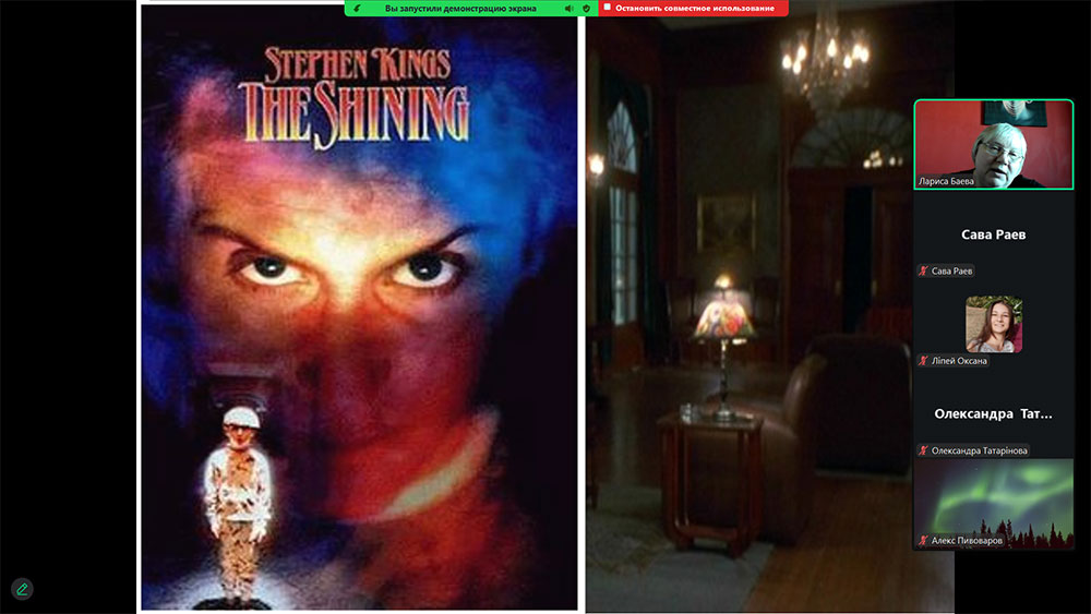 Окремим блоком стало обговорення екранізацій роману. Говорили про культовий фільм Стенлі Кубріка — його візуальну мову, акторську гру та особливості зйомки, які створюють гнітючу й водночас гіпнотичну атмосферу. Також згадали мінісеріал, створений за активної участі самого Стівена Кінга, що дозволяє глибше відчути настрій і задум автора.