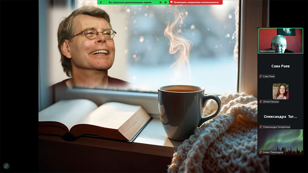 З перших хвилин зустрічі панувала атмосфера напруженої тиші, загадковості та легкого містичного настрою, що ідеально відповідала темі заходу. Поєднання літератури й кіно створило відчуття справжнього кінокадру, у якому слово й образ доповнювали одне одного, занурюючи учасників у психологічний світ творів Стівена Кінга.