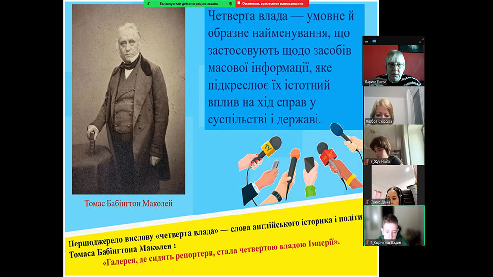 Під час зустрічі учасники мали змогу поглянути на журналістику не лише як на професію, а й як на потужний суспільний інструмент впливу, що формує громадську думку, світогляд і навіть поведінку людини. Школярі дізналися про витоки поняття «четверта влада», простежили етапи розвитку журналістики від перших друкованих видань до сучасних медіа та відкрили для себе чимало цікавих і маловідомих фактів з історії цієї сфери.