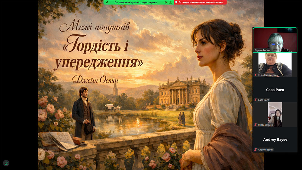 Зустріч була присвячена життю та творчості однієї з найвідоміших англійських письменниць ХІХ століття — Джейн Остін. Під час заходу учасники дізналися про основні етапи життя авторки, родинне коло, у якому формувався її світогляд, а також про те, як і за яких обставин вона створювала свої романи. Окрему увагу було приділено особливостям стилю письменниці, її тонкому гумору, іронії та вмінню глибоко розкривати внутрішній світ персонажів.