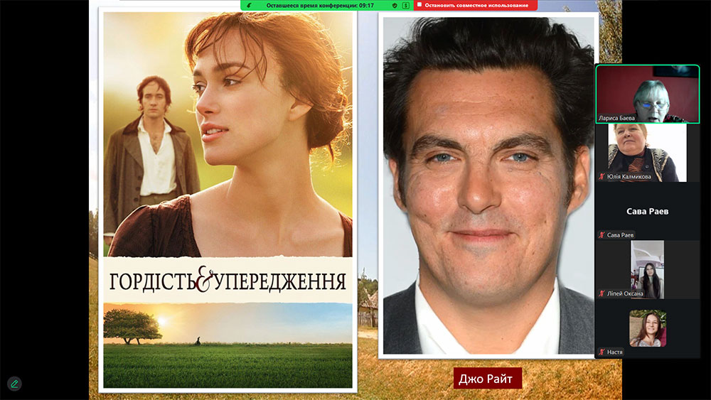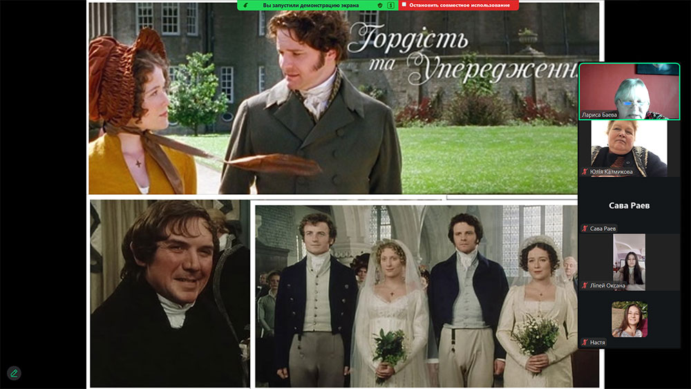 У другій частині заходу увагу було зосереджено на кіновтіленнях роману. Учасники ознайомилися з історією створення мінісеріалу BBC 1995 року та художнього фільму «Гордість і упередження» 2005 року. Присутні дізналися про режисерів, сценаристів і акторський склад обох екранізацій, а також порівняли, як по-різному режисери інтерпретували образи героїв, атмосферу епохи та сюжетні акценти. Обговорювалися відмінності у подачі характерів, темпі розповіді, візуальному стилі й емоційному наповненні стрічок.