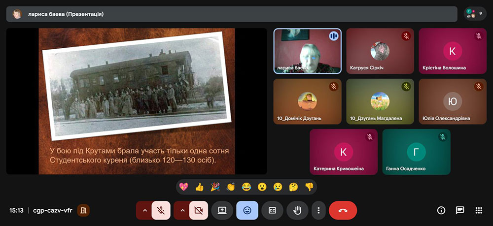 Під час заходу учні дізналися про складні політичні обставини, що передували бою під Крутами, а також про формування студентських загонів, до складу яких входили не лише студенти, а й учні старших класів київських гімназій. Особливу увагу було приділено перебігу самого бою, трагічній загибелі 27 студентів та їхньому жертовному подвигу в ім’я української державності.