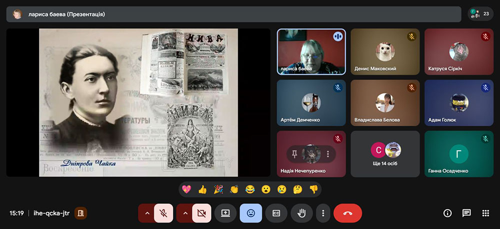 Старшокласники отримали докладну інформацію про дитячі та юнацькі роки письменниці, її становлення як творчої особистості, активну культурно-просвітницьку діяльність і вагомий внесок у розвиток української літератури. Особливу увагу було приділено Херсонському періоду життя Дніпрової Чайки, який став важливим етапом її творчого зростання та формування світогляду. Саме степи, Дніпро та південний край надихали письменницю на створення проникливих поетичних і прозових творів.