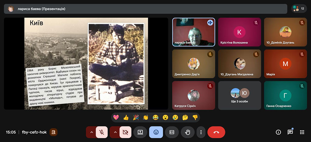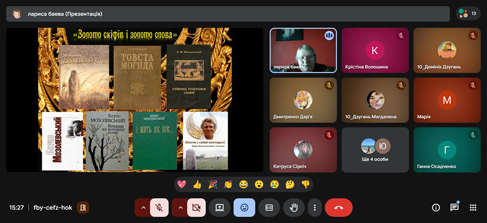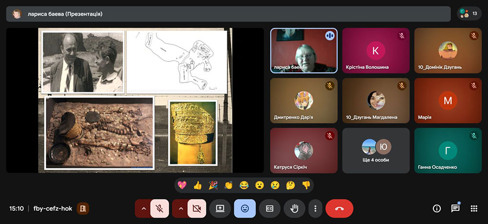 Особливу увагу було приділено знаковим археологічним відкриттям Бориса Мозолевського, зокрема унікальним скіфським знахідкам (пектораль, убір скіфської царівни), що принесли йому світове визнання та відкрили нові сторінки минулого України. Учні дізналися, яке значення ці відкриття мають для формування національної історичної пам’яті й утвердження України на культурній мапі світу.