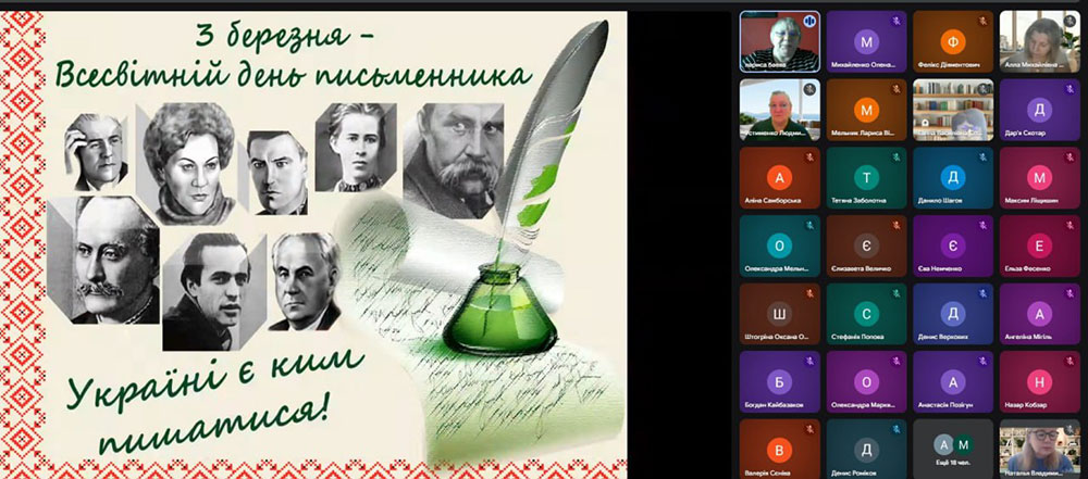 До Всесвітнього дня письменника працівники відділу обслуговування юнацтва та молоді Херсонської обласної бібліотеки для дітей імені Дніпрової Чайки провели для старшокласників Херсонського ліцею №6 Херсонської міської ради , Херсонського загальноосвітніого навчально-виховний комплексу №11 Херсонської міської ради, Херсонської гімназії № 14 Херсонської міської ради змістовний та емоційно насичений захід під назвою «Перо проти зброї: письменники, які захищають Україну. Літакцент».