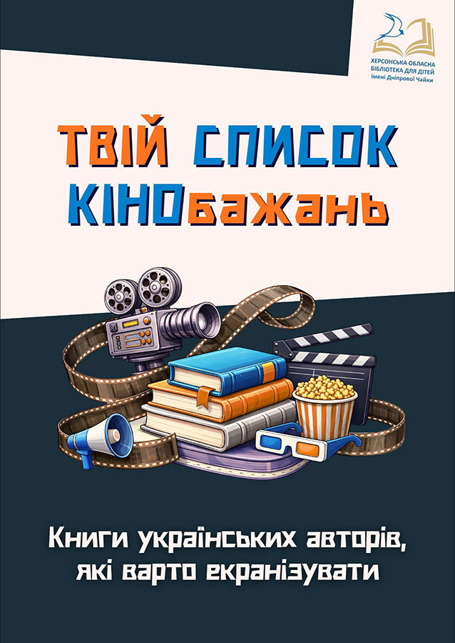 На електронній «книжковій полиці» Херсонської обласної бібліотеки для дітей імені Дніпрової Чайки – поповнення, що зацікавить усіх, хто любить читати й дивитися кіно. У межах Тижня молодіжної книги – 2026 «Книжковий вайб: читай, твори, надихай!» фахівці інформаційно-бібліографічного відділу представляють нове бібліографічне видання – огляд-натхнення «Твій список кінобажань: книги українських авторів, які варто екранізувати». Адресуємо його насамперед підліткам, молоді, бібліотекарям, а також усім, хто цікавиться сучасною українською літературою та кіно.